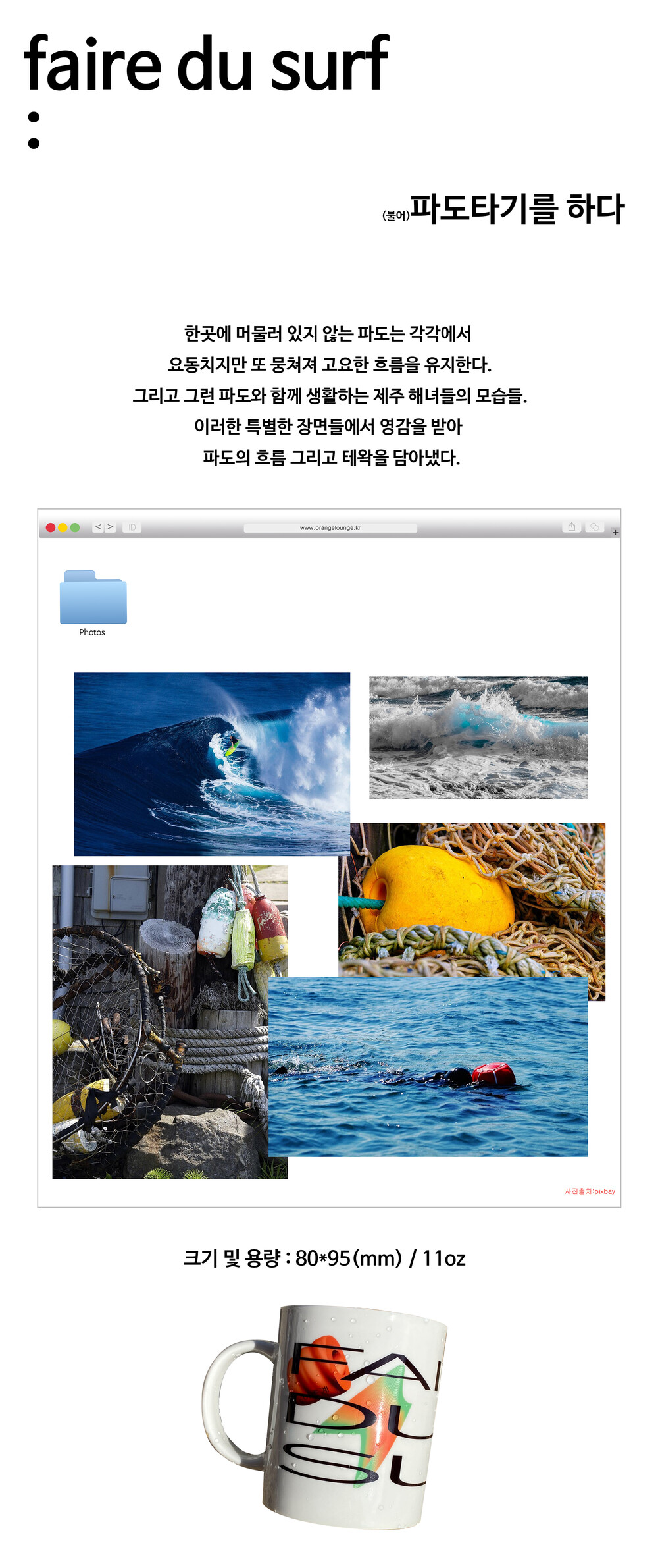 한곳에 머무르지않는 파도와 그런 파도속을 자유로이 다니는 해녀의 모습에서 영감을 얻어 디자인한 제품
